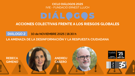 Enlace al vídeo del diálogo La Amenaza de la desinformación y la respuesta ciudadana, con el catedrático Andreu Casero y la periodista Rebeca Gimeno, el segundo diálogo del ciclo organizado por la Fundació Ernest Lluch y el Ivie, Acciones colectivas frente a los riesgos globales