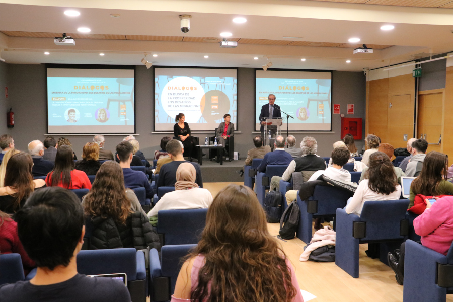 Las dos expertas invitadas al diálogo han dedicado parte de su conversación a recordar la importancia de fomentar la igualdad de oportunidades como base para potenciar el talento. “Las mujeres son más de la mitad de las personas migrantes con formación superior, y eso puede contribuir a su empoderamiento, pero necesitan que se garantice la igualdad de oportunidades tanto para salir del país de origen como para encontrar después un puesto de trabajo adecuado a su talento en los de destino”, ha aclarado Revenga.